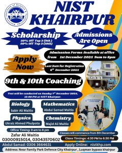 Weβre excited to announce that admissions are now open at the National Institute of Science & Technology (NIST) Khairpur for our specialized coaching programs for 9th and 10th grade students.